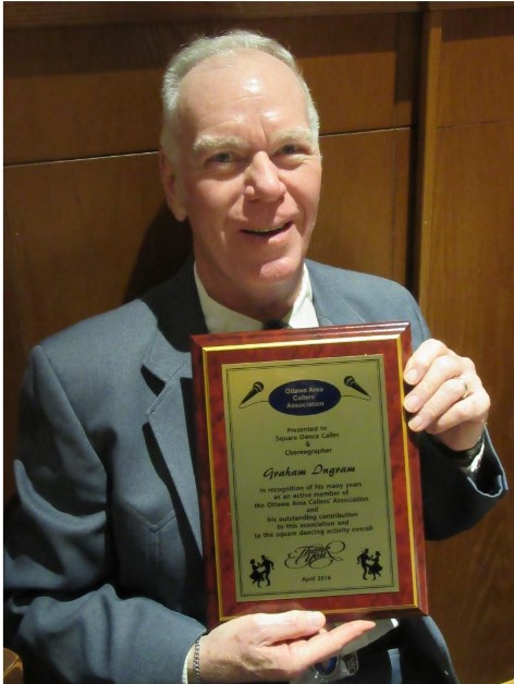 Graham not only CaIIed Squares, but Cued Rounds, and Prompted Contra Dancing. He was a music teacher, a musician playing Guitar & Bass in a band, and was also the music director for The Governor Generals Foot Guards. Graham often gave very interesting Presentations on Timing and Call Delivery, and One Night Stands here at the OACA.
